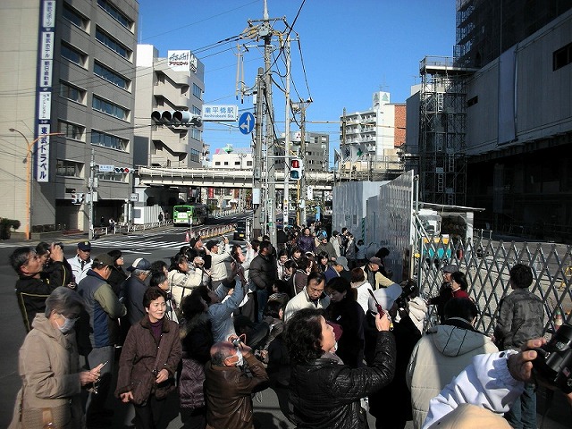 建設現場の西の端に到着。観光客が多い。ここからは、カメラにその全貌が収まらない。